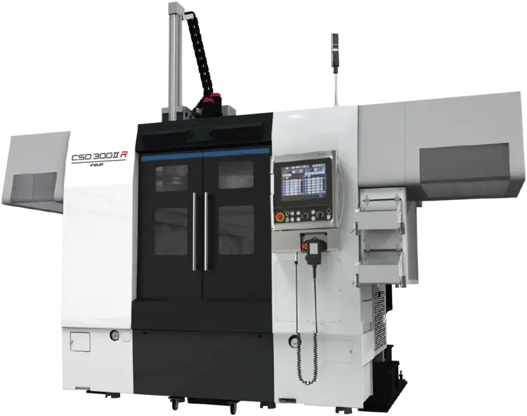 This robust lathe performs with extremely rapid robot traverse and turret indexing speeds. Equipped with a custom HMI and a single integrated Fanuc control panel, the CSD-300IIR enables convenient operation and setup of the machine and robot.